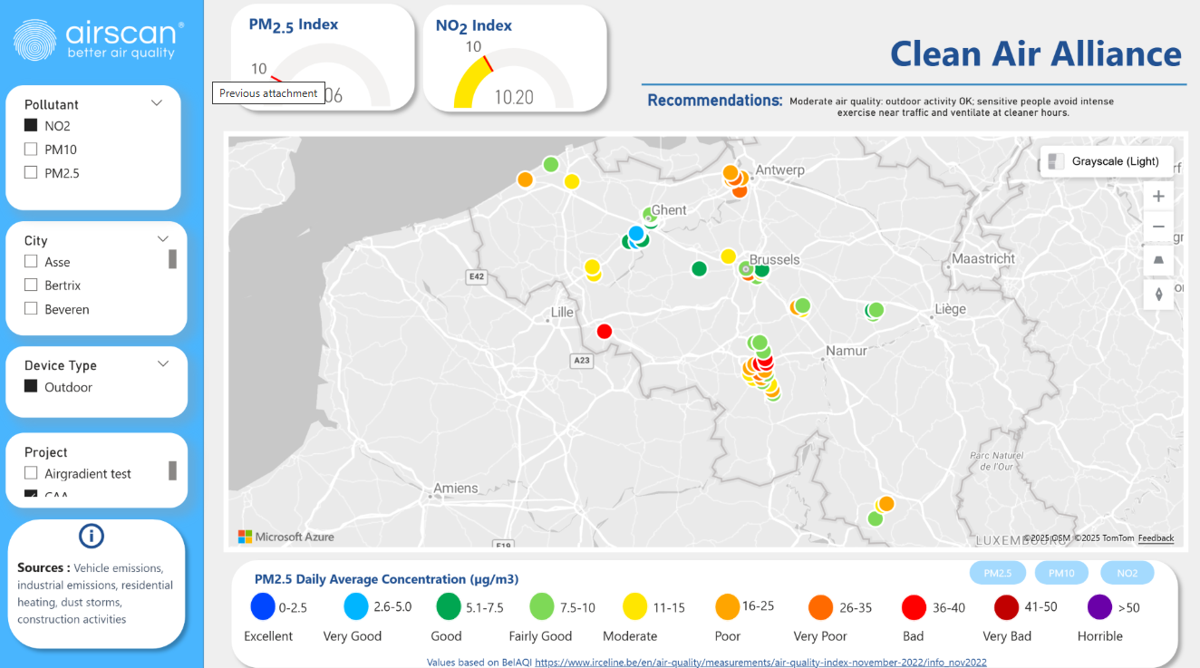 In July 2025, Airscan launched the Clean Air Alliance with the support of its co-founders, including AG Real Estate, Belfius, Delhaize, Interparking and UPSI-BVS. The network has now reached its first operational milestone: 100 monitoring points installed across Belgium.